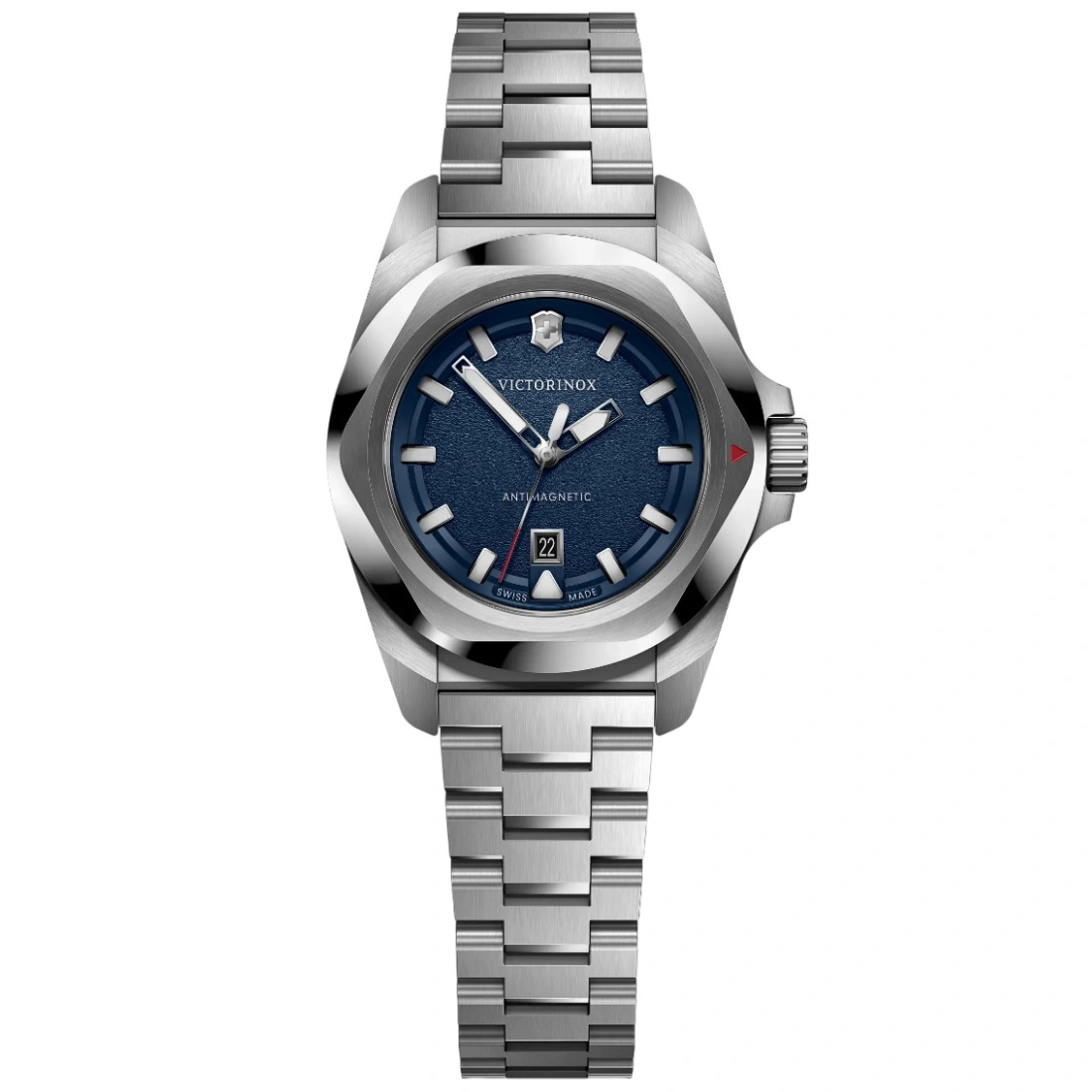 - Reloj Swiss Made con resistencia a los golpes con certificación ISO y resistencia al agua hasta 100 m - Protección antimagnetismo conforme a las normas ISO y bisel con revestimiento resistente a los rayones - Brazalete de lujo de acero, intercambiable sin necesidad de herramientas para una rápida personalización