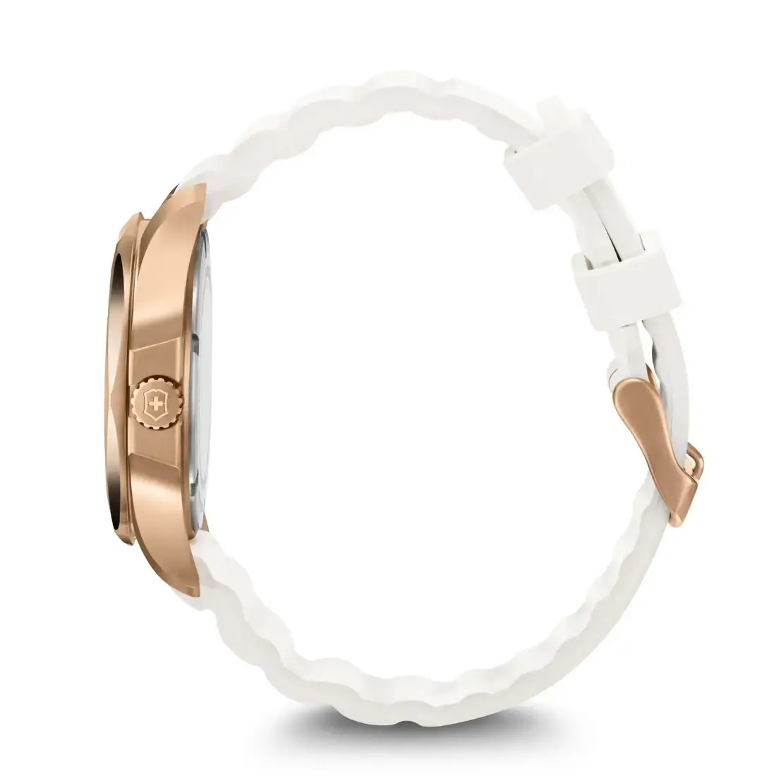 Color del maletín: Rosa dorado Color del bisel: Rosa dorado Color de la esfera: Blanco Color del brazalete: Blanco