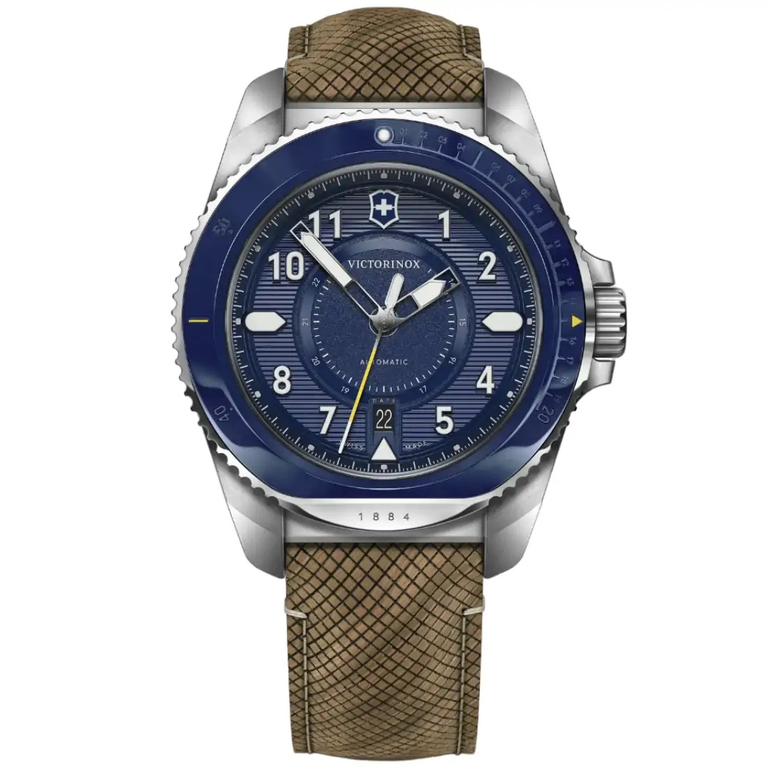Color del maletín: Plata Color del bisel: Plata Color de la esfera: Azul Color del brazalete: Café